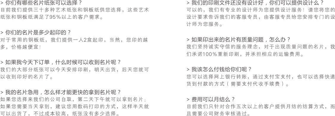 1、颜色不限,客户需提供可印刷电子文件,如需名片设计,需要加收30元设计费 2、名片后加工可选择烫金、烫银、击凸、啤圆角等.