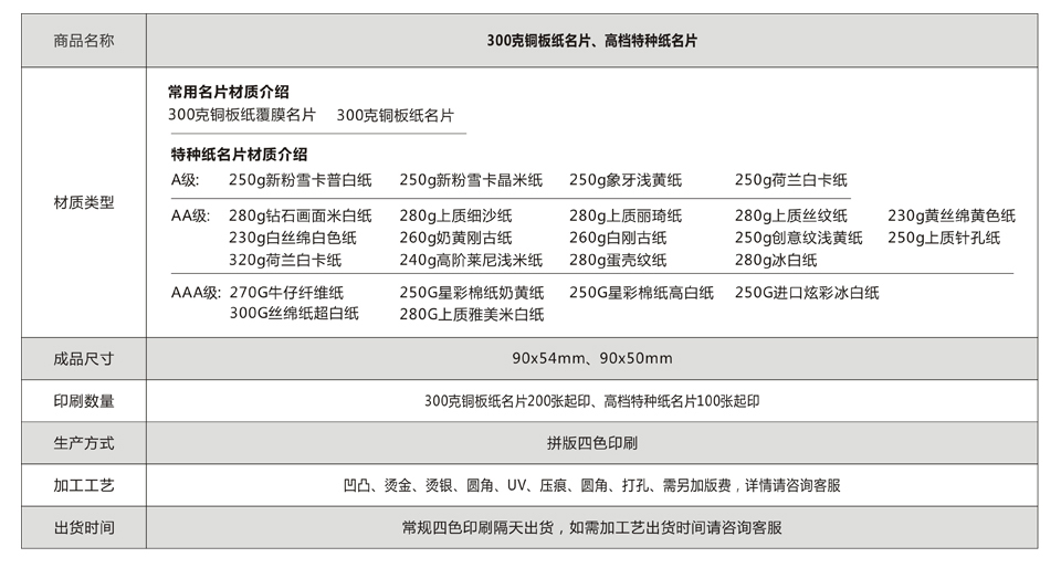 300克铜板纸名片
